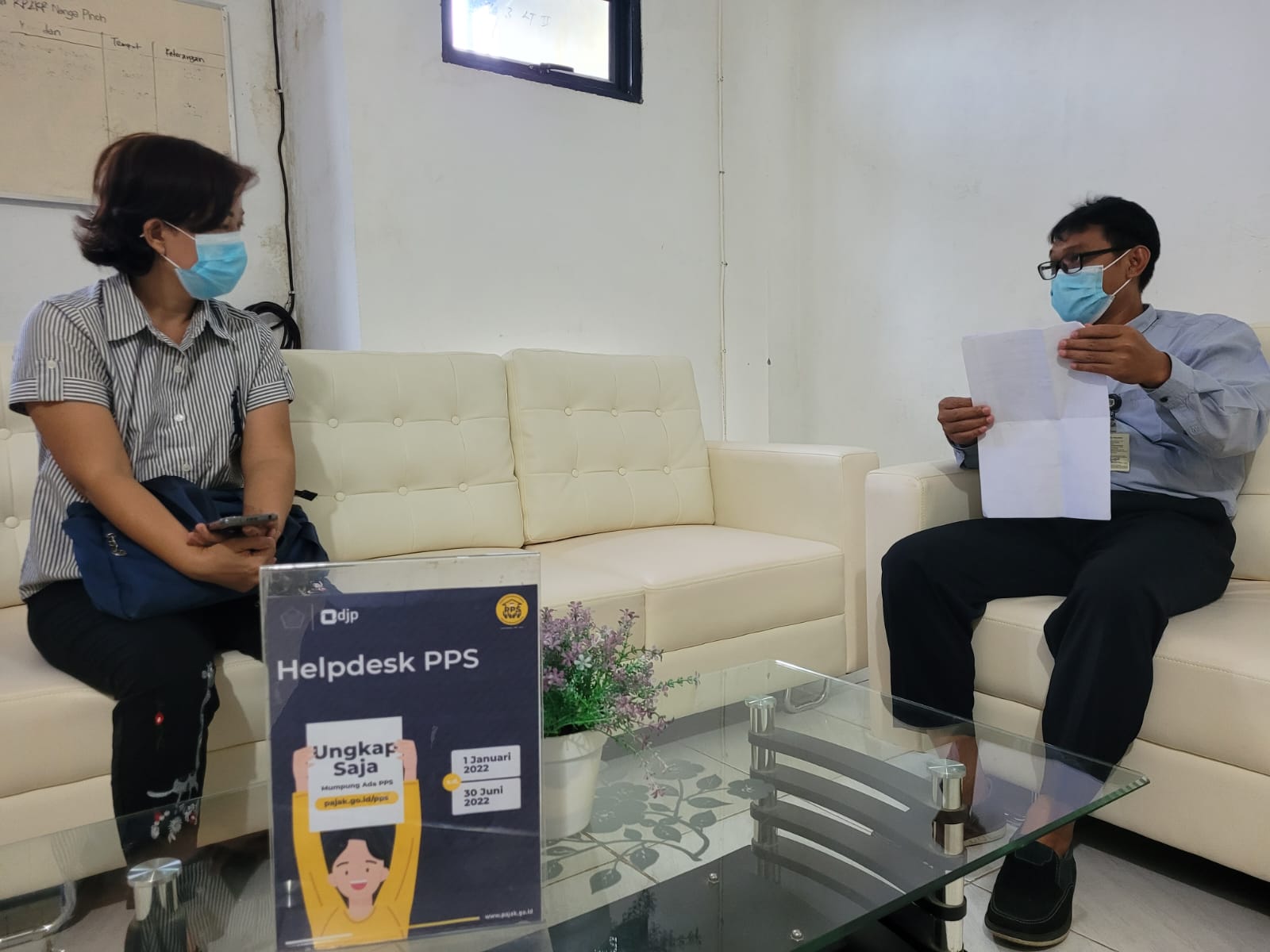 Setelah AR KPP Pratama SIntang yang bertanggung jawab atas wajib pajak ini datang, wajib pajak pun berdiskusi mengenai konfirmasi harta dalam surat imbauan keikutsertaan PPS. Setelah berdiskusi, AR KPP Pratama Sintang menyebutkan bahwa Ia siap membantu memberikan asistensi kepada wajib pajak tersebut dalam mengikuti PPS ini.