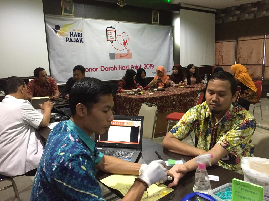 Banyak bentuk kontribusi sosial yang dapat disumbangkan seseorang kepada sesamanya, salah satunya adalah dengan mendonorkan darah. Kegiatan donor darah merupakan salah satu rangkaian kegiatan dalam Peringatan Hari Pajak tahun 2019. Kanwil DJP Jawa Tengah I menyelenggarakan kegiatan donor darah bekerja sama dengan Palang Merah Indonesia (PMI) Kota Semarang di Aula KPP Pratama Semarang Barat (Jumat, 12/7).
