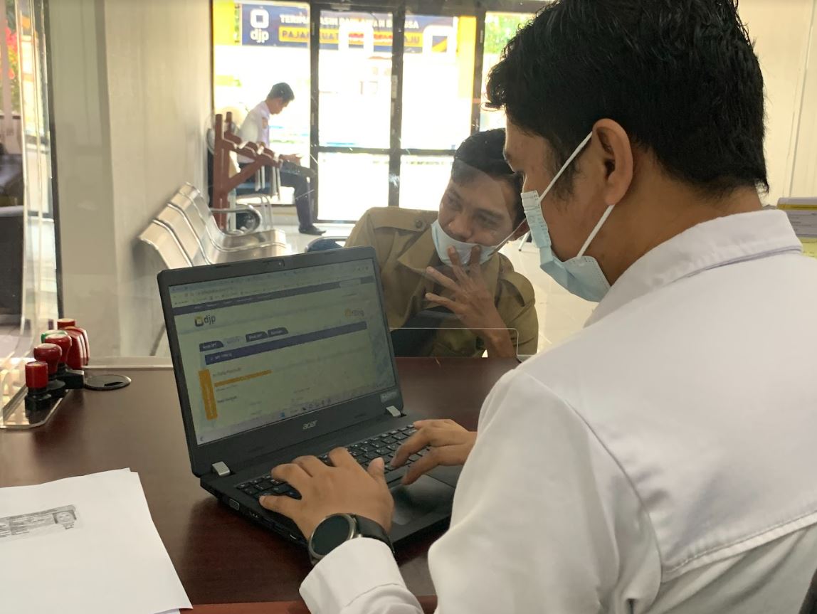 Kantor Pelayanan, Penyuluhan, dan Konsultasi Perpajakan (KP2KP) Benteng memberikan pelayanan kepada wajib pajak yang datang langsung ke Tempat Pelayanan Terpadu (TPT) KP2KP Benteng, Kabupaten Kepulauan Selayar (Senin, 28/11). Maksud kedatangan dari wajib pajak ini adalah untuk melakukan pengecekan status dari NPWP miliknya.