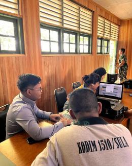 Kepala KP2KP Sanana Septian Sukma, dibantu oleh dua pelaksana Ricky Yanuar dan Eko Desy Nursafitri, memberikan pelayanan kepada 50 anggota TNI Angkatan Darat yang hadir. Sebelum Pojok Pajak dibuka, Septian Sukma menyampaikan sambutan mengenai kewajiban Pelaporan SPT Tahunan untuk anggota TNI sesuai Surat Edaran Menteri PANRB Nomor 41 Tahun 2019 serta Pemadanan Nomor Induk Kependudukan (NIK) menjadi Nomor Pokok Wajib Pajak (NPWP). Pojok Pajak dibuka dengan dua meja antrean agar pelayanan lebih lancar mengingat jumlah wajib pajak yang tidak sedikit.