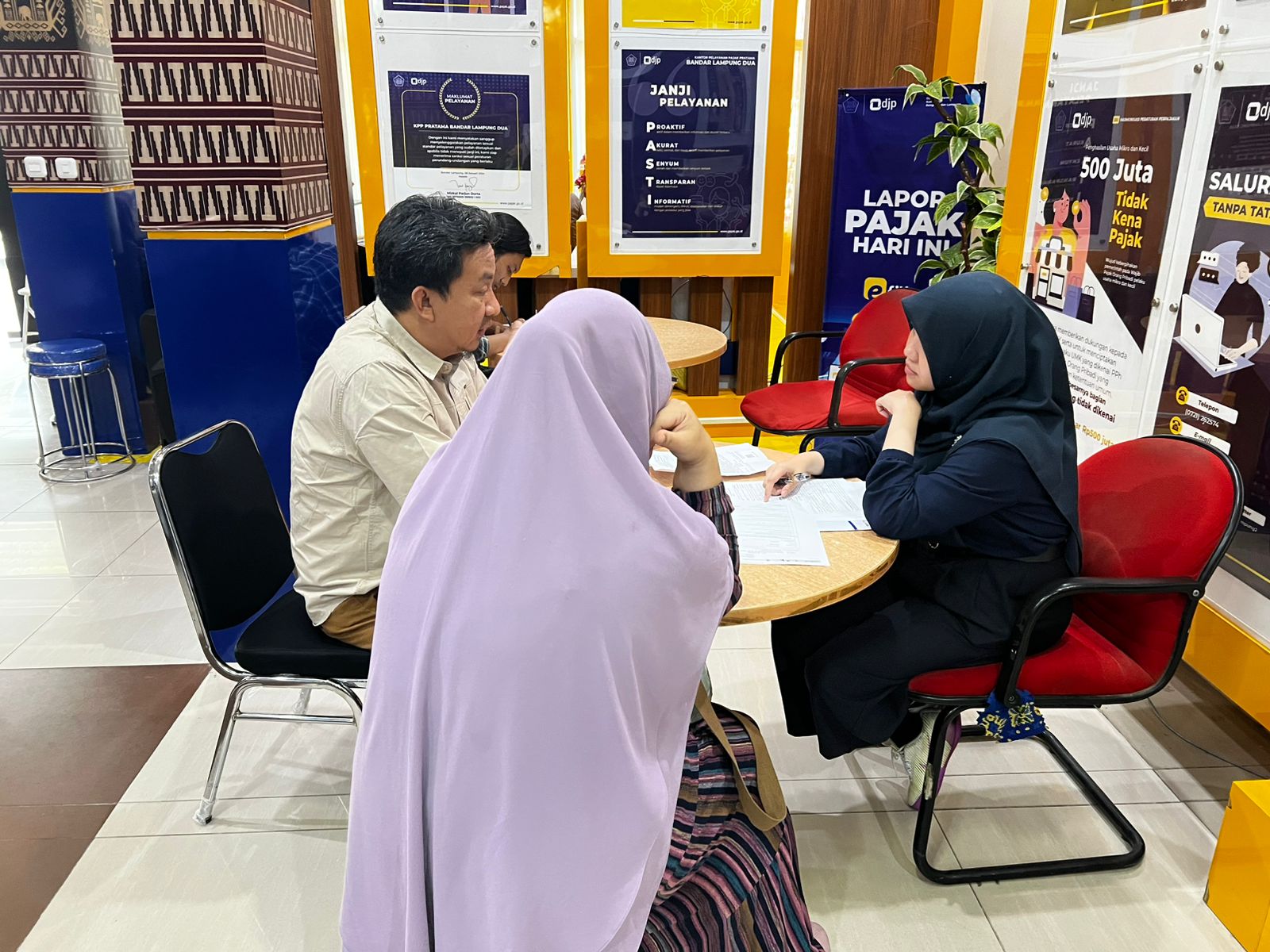 Winaryo bertemu dengan Account Representative (AR) KPP Pratama Bandar Lampung Dua Rohimasuri untuk berkonsultasi. Rohimasuri menanyakan beberapa hal dan kelengkapan dokumen seperti laporan keuangan tahun 2024 dan berkas lain yang dibutuhkan untuk melaporkan SPT Tahunan Orang Pribadi tahun 2024.
