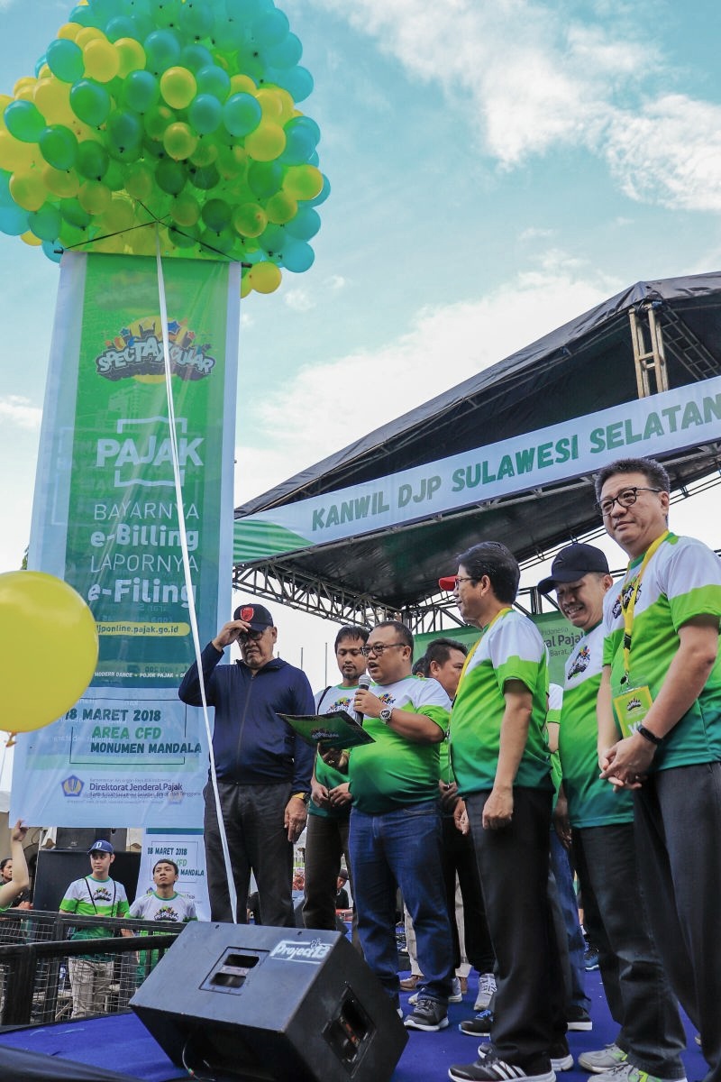 Menjadi pembuka acara Spectaxcular, Kakanwil DJP Sulselbartra melakukan pembacaan deklarasi bersama jajaran eselon 3 di Lingkungan Kanwil DJP Sulselbartra yang disaksikan langsung oleh direktur dan deputi masing-masing dari OJK dan BI, serta Ketua DPRD Sulsel dan perwakilan wajib pajak di hadapan seluruh masyarkat yang berada di area CFD Monumen Mandala.