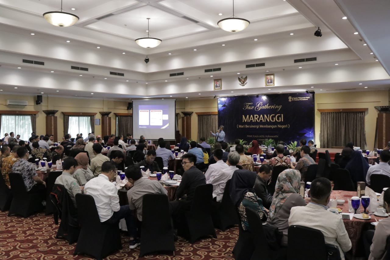 KPP Pratama Purwakarta mengadakan acara Tax Gathering dengan wajib pajak di Aula Prime Plaza Hotel, Kota Bukit Indah, Purwakarta (Rabu, 11/12). Yang unik dari kegiatan tersebut ialah ada nama “MARANGGI” yang terpampang jelas dalam backdrop dan undangan acara Tax Gathering. Maranggi disini bukan merupakan sponsor salah satu jenis makanan khas berupa sate yang terkenal di Purwakarta, namun merupakan akronim dari “Mari Bersinergi Membangun Negeri”.