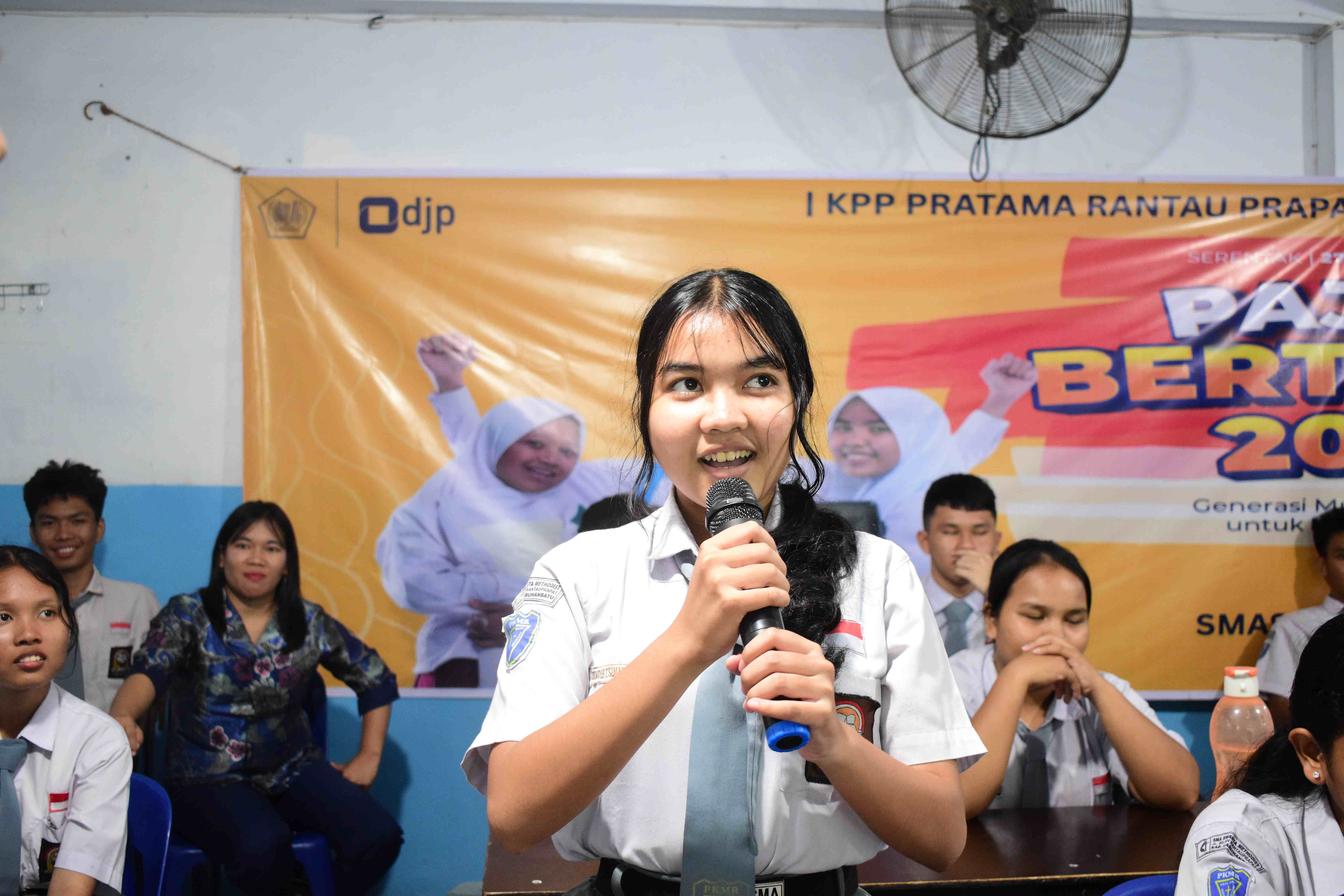 Kantor Pelayanan Pajak (KPP) Pratama Rantau Prapat bekerja sama dengan Kantor Pelayanan, Penyuluhan, dan Konsultasi Perpajakan (KP2KP) Kota Pinang kembali menyelenggarakan kegiatan Pajak Bertutur bersama para siswa-siswi Sekolah Menengah Atas (SMA) Swasta Methodist Rantauprapat, Labuhanbatu, Sumatera Utara (Rabu, 27/8). Acara ini diikuti dengan antusias oleh para pelajar yang hadir.