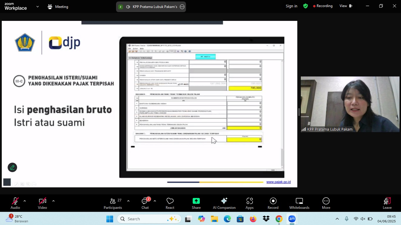 "Sebagai pelaku usaha yang telah memiliki NPWP, Bapak dan Ibu wajib untuk melaporkan SPT Tahunan setiap tahunnya," jelas Adilah Maghfira, salah seorang narasumber dalam kegiatan tersebut.