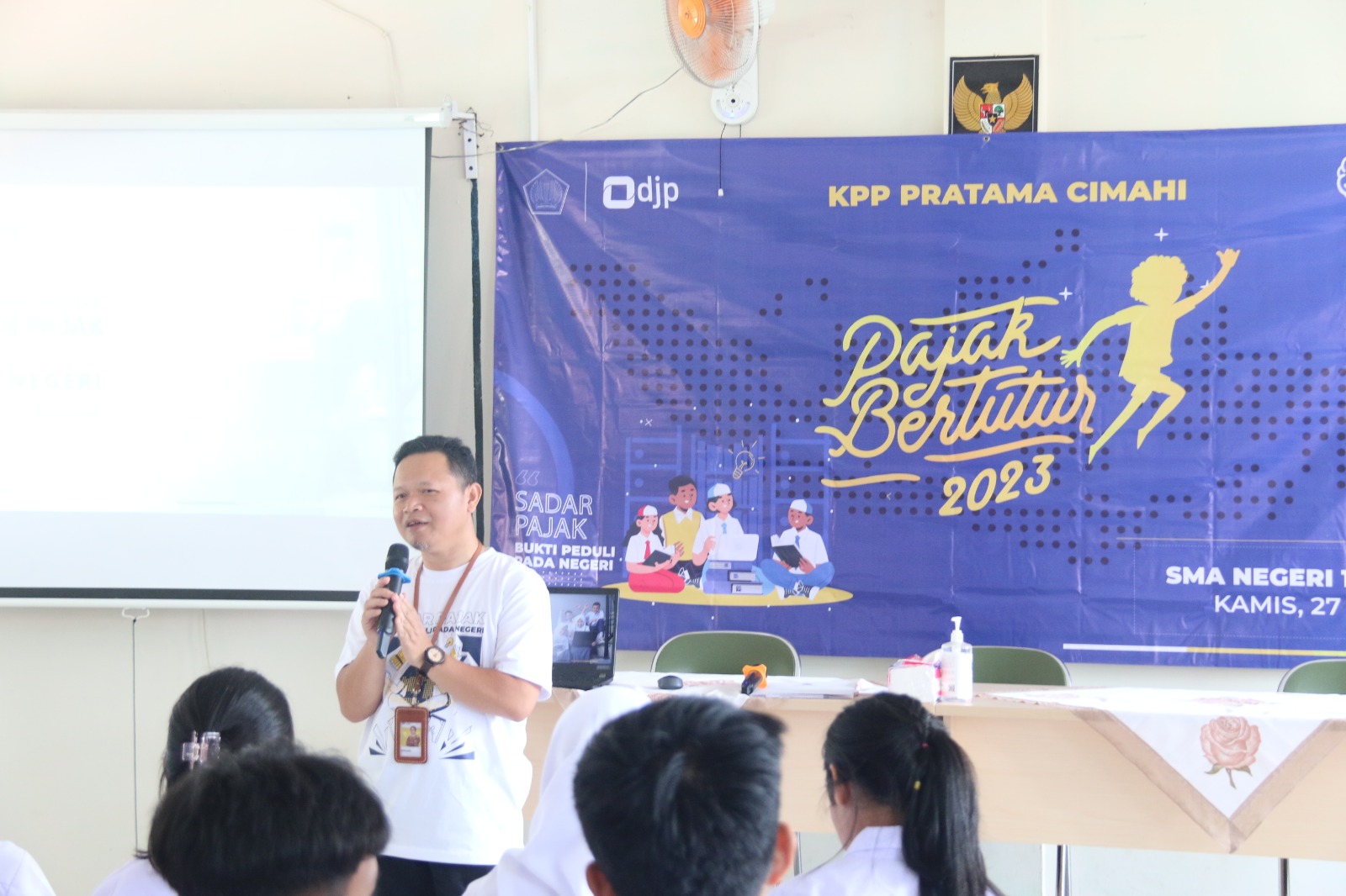 Kantor Pelayanan Pajak (KPP) Pratama Cimahi menyelenggarakan Pajak Bertutur 2023 di Sekolah Menengah Atas Negeri (SMAN) 1 Ngamprah, Jalan Kenanga Raya PCI 2, Desa Tani Mulya, Kabupaten Bandung Barat. Kegiatan diikuti oleh perwakilan siswa dari kelas 10 hingga kelas 12 (Kamis, 27/7).