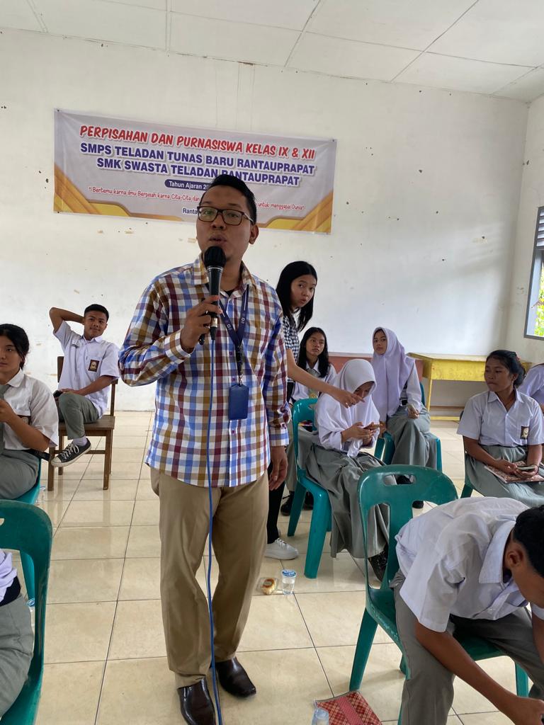 Tim Penyuluh Pajak Kantor Pelayanan Pajak (KPP) Pratama Rantau Prapat mengadakan Tax Goes To School (TGTS) kepada para siswa Sekolah Menengah Kejuruan (SMK) Swasta Teladan Rantau Prapat di Ruang Kelas SMK Swasta Teladan Rantau Prapat di Kelurahan Sioldengan, Kecamatan Rantau Selatan, Kabupaten Labuhan Batu, Sumatera Utara. Kegiatan yang diikuti oleh 40 siswa ini diisi dengan pemaparan pengenalan pajak serta games (Kamis, 20/7).