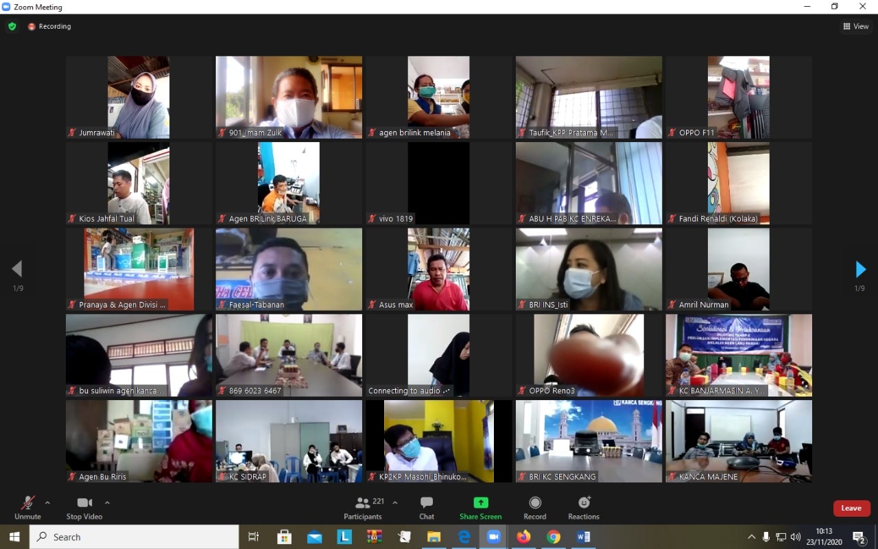 Upaya ini ditindaklanjuti DJP dan BRI dengan menggelar Sosialisasi Penatausahaan Penerimaan Negara dan Pedoman Pedoman Penerimaan Negara kepada 237 Agen BRILink di Denpasar, Makasar, dan Banjarmasin melalui media Zoom Meeting di Jakarta (Senin, 23/11).