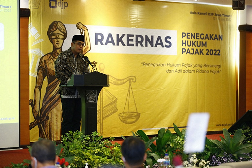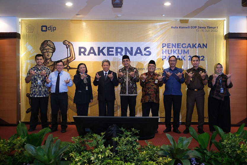 Direktorat Jenderal Pajak (DJP) bersama beberapa instansi terkait bersinergi untuk menegakkan hukum pidana pajak dalam gelaran Rapat Kerja Nasional (Rakernas) Penegakan Hukum Pajak Tahun 2022 yang bertempat di Aula Kantor Wilayah DJP Jawa Timur I, Surabaya (Rabu, 13/7).