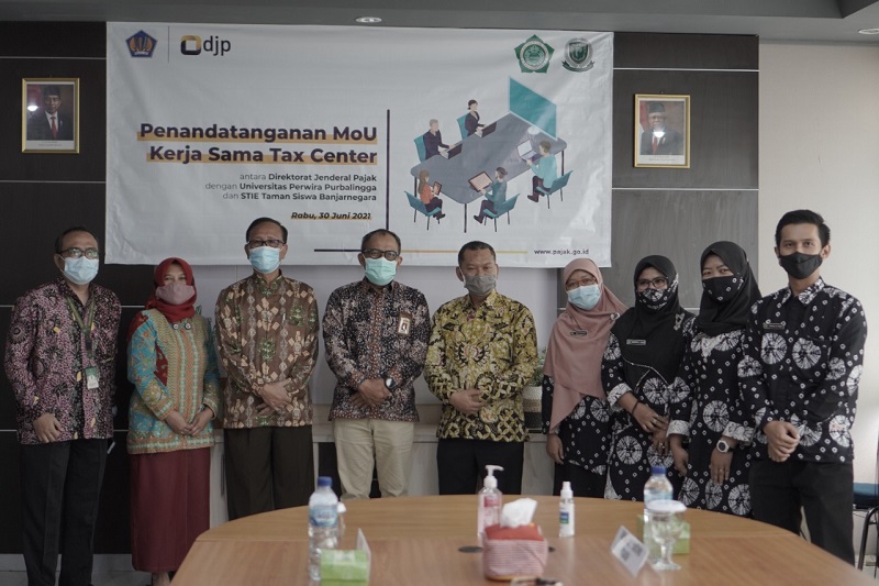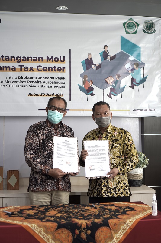 Kantor Wilayah Direktorat Jenderal Pajak (Kanwil DJP) Jawa Tengah II dan Sekolah Tinggi Ilmu Ekonomi (STIE) Tamansiswa Banjarnegara menandatangani Perjanjian Kerja Sama (PKS) Tax Center di Kantor Pelayanan Pajak (KPP) Pratama Purbalingga, Purbalingga (Rabu, 30/6).