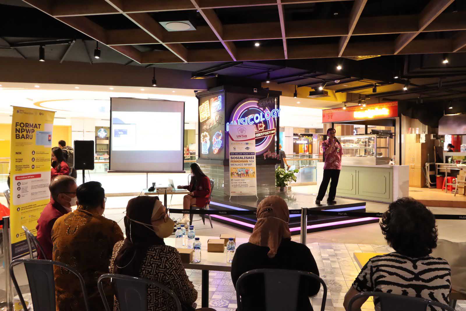 Tax Center Universitas Tarumanegara dengan Kantor Wilayah (Kanwil) Direktorat Jenderal Pajak (DJP) Jakarta Barat dan Kantor Pelayanan Pajak Jakarta Cengkareng membuka layanan Pojok Pajak di Lantai 1 Asri Living Lounge, Hublife Jakarta, Grogol Petamburan, Jakarta Barat (Selasa, 7/3). Layanan Pojok Pajak Hublife dibuka mulai tanggal 7 hingga 10 Maret 2023. Layanan yang diberikan berupa asistensi pelaporan SPT Tahunan serta pemadanan NIK sebagai NPWP.