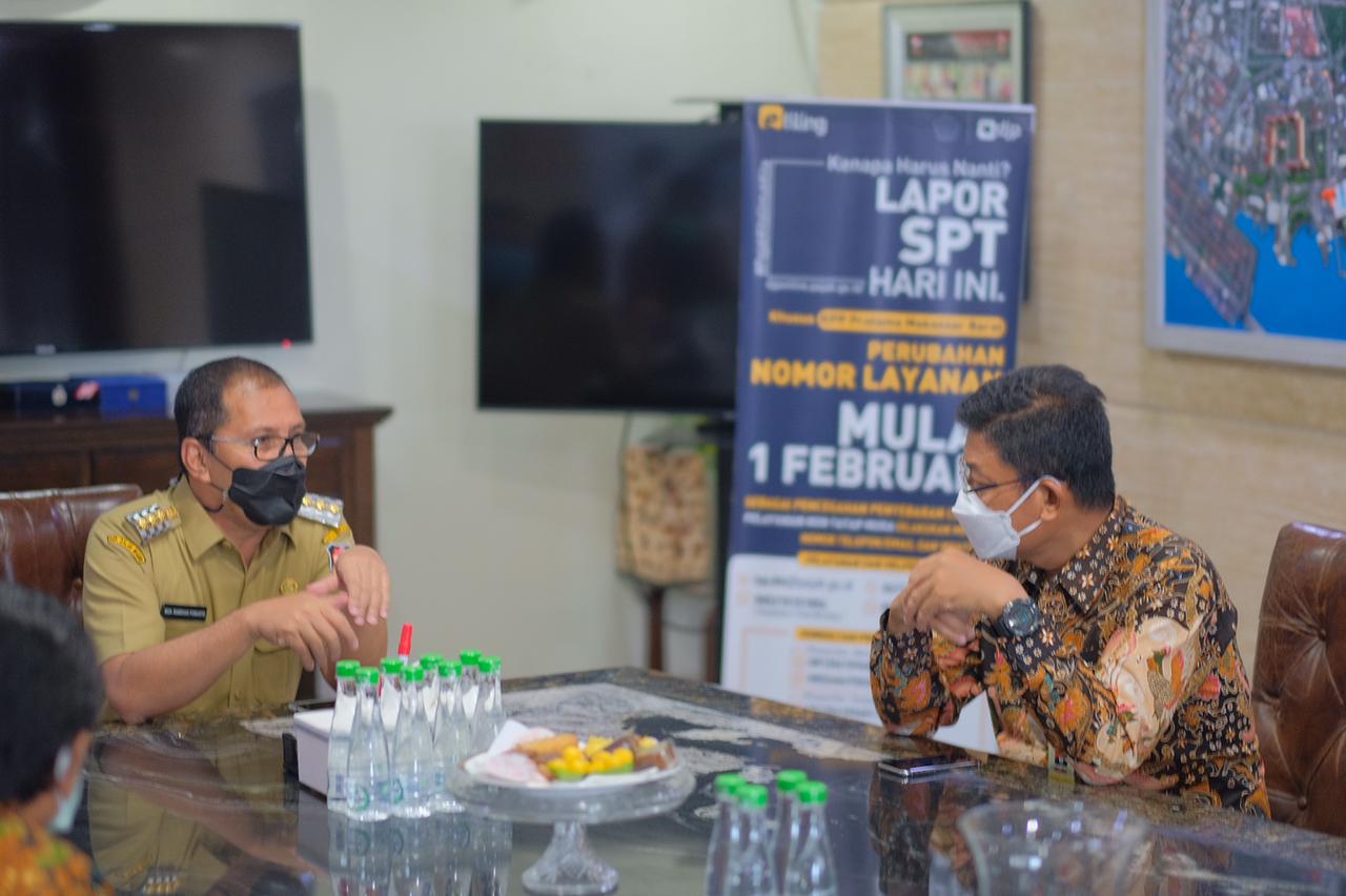 Kepala Kanwil DJP Sulselbartra Hantriono Joko Susilo beserta jajaran melakukan audiensi bersama Walikota Makassar Ir. H. Moh. Ramdhan Pomanto di kediaman pribadi Walikota Makassar, Kota Makassar (Senin, 8/3).