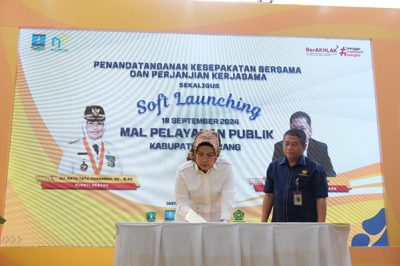 Bupati Kabupaten Serang Hj. Ratu Tatu Chasanah, S.E. M.Ak. membuka acara Penandatangan Kesepakatan Bersama dan Perjanjian Kerja Sama (PKS) untuk seluruh instansi. “Penandatangananan nota kesepakatan bersama MPP ini merupakan awal dari komitmen bersama seluruh instansi pemerintah yang ada di Kabupaten Serang untuk memberikan pelayanan yang lebih baik kepada masyarakat,” ucap Tatu dalam sambutannya.