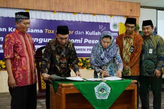 Kepala Kantor Wilayah Direktorat Jenderal Pajak, Agustin Vita Avantin meresmikan Tax Center Institut Dirosat Islamiyah Al-Amien Prenduan Sumenep dengan melakukan pengguntingan pita yang berlokasi di Pondok Pesantren Al-Amien, Kab. Sumenep, Madura (Kamis, 16/2).