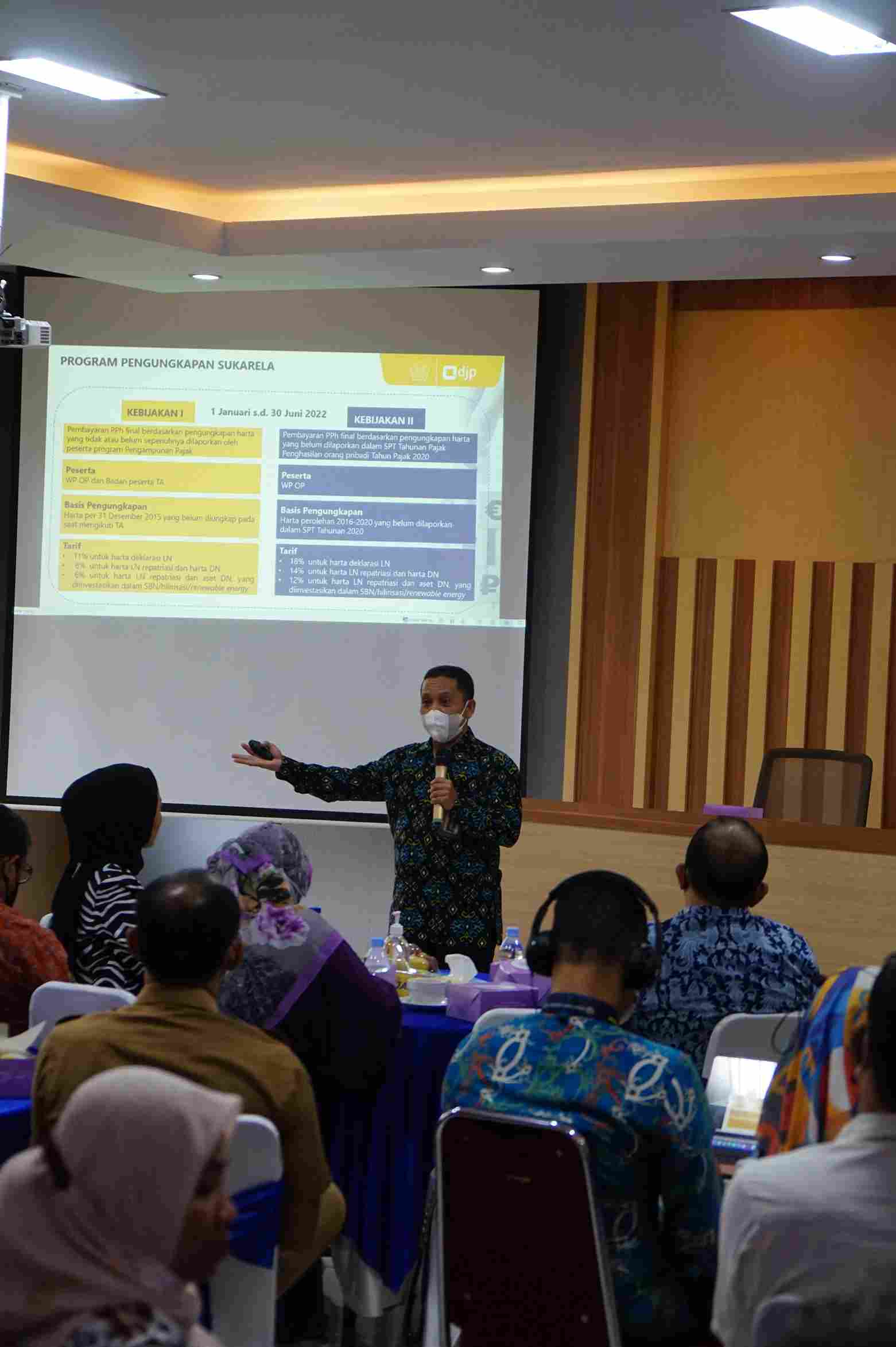 Kegiatan dibuka oleh Kepala Kanwil DJP Jawa Barat II, Harry Gumelar dengan menyampaikan pokok pembahasan terkait Undang-Undang Harmonisasi Peraturan Perpajakan (UU HPP), khususnya terkait PPS. Penyampaian laporan kegiatan disampaikan oleh Kepala Bidang P2Humas Kanwil DJP Jawa Barat II, Handayani. Dan penyampaian materi PPS ini disampaikan oleh Penyuluh Pajak Ahli Madya, Beny Santoso. Acara ini dihadiri juga oleh Kepala KPP dan fungsional penyuluh unit kerja Wajib Pajak terdaftar.