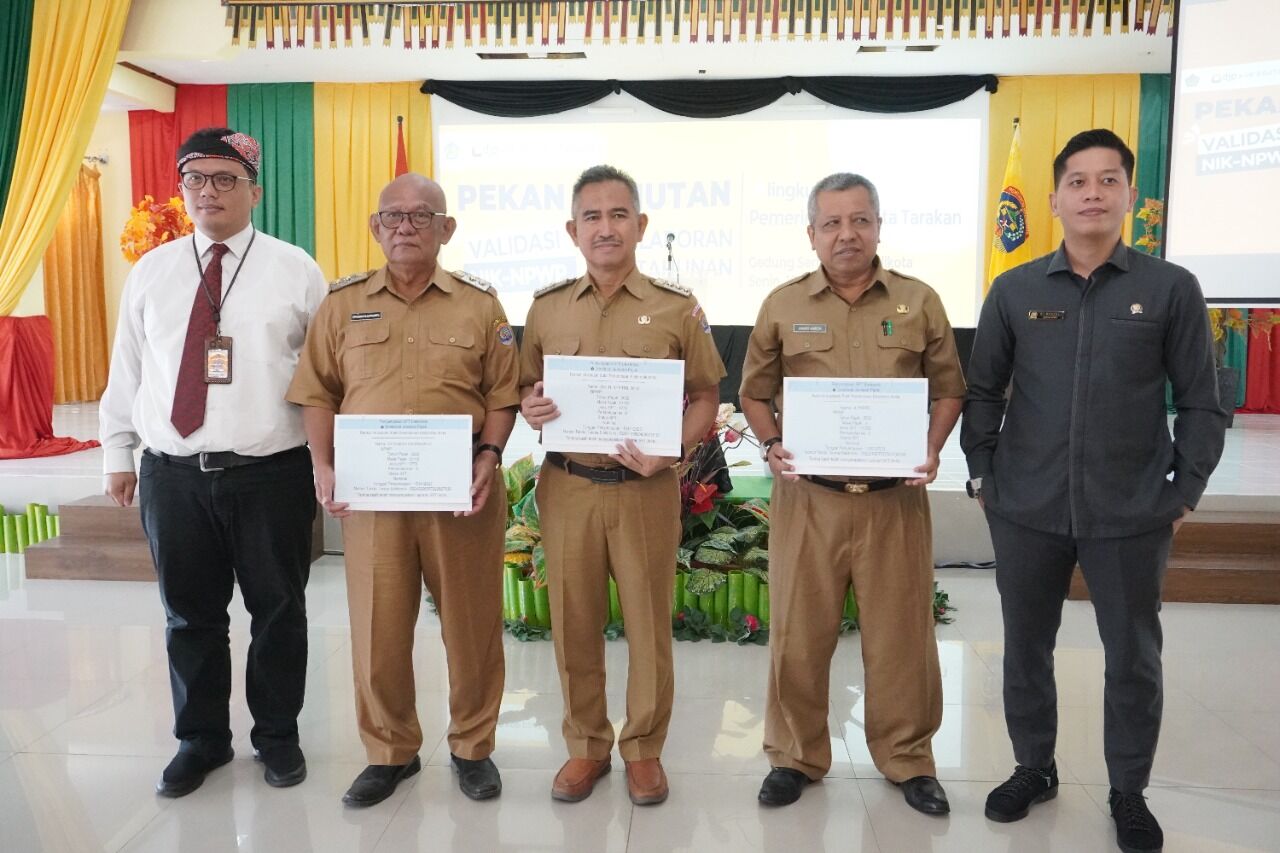 Di akhir acara, Kepala KPP Pratama Tarakan memberikan plakat kepada Wali Kota Tarakan dan dilanjutkan foto bersama sambil menunjukkan bukti pelaporan SPT Tahunan para pejabat yang hadir.