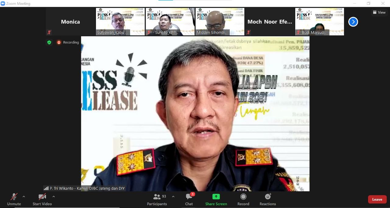 Kanwil DJP Jawa Tengah I bersama dengan Kementerian Keuangan Perwakilan Provinsi Jawa Tengah dan DIY menggelar Konferensi Pers Capaian Kinerja APBN Semester I Tahun Anggaran 2021 di Semarang (Senin,12/7). Kegiatan diikuti oleh sejumlah pelaku Usaha Mikro Kecil dan Menengah (UMKM) serta wartawan media massa.