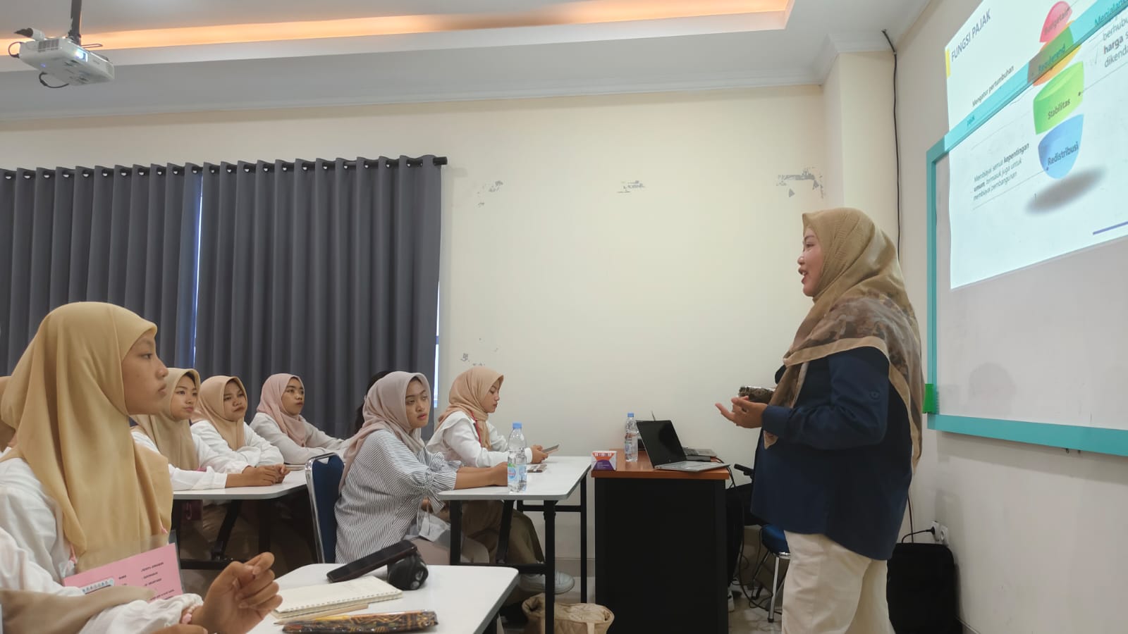 Materi "Pelayanan perpajakan di Indonesia" dijadwalkan pada hari terakhir PKKMB. Sesi ini memberikan pengenalan dasar tentang sistem perpajakan di Indonesia, jenis-jenis pajak, dan bagaimana melakukan kewajiban perpajakan dengan benar.