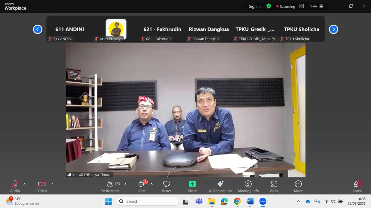 Kantor Wilayah Direktorat Jenderal Pajak Jawa Timur I (Kanwil DJP Jatim I) bersama Kanwil DJP Jatim II dan Kanwil DJP Jatim III mengikuti rapat koordinasi percepatan pembentukan Koperasi Desa/Kelurahan Merah Putih yang digelar secara daring (Rabu, 25/6). Kegiatan ini diselenggarakan oleh Dinas Koperasi, Usaha Kecil, dan Menengah Provinsi Jawa Timur serta diikuti oleh para pengurus Koperasi Desa/Kelurahan Merah Putih dari seluruh Jawa Timur.