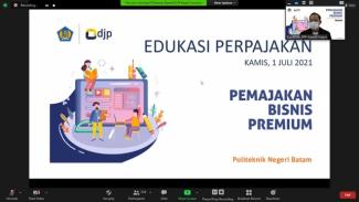 Kantor Wilayah Direktorat Jenderal Pajak Kepulauan Riau (Kanwil DJP Kepri) bersama Tax Center Politeknik Negeri Batam menggelar edukasi perpajakan dengan tema “Pemajakan Bisnis Premium” secara daring di Batam (Kamis, 1/7).