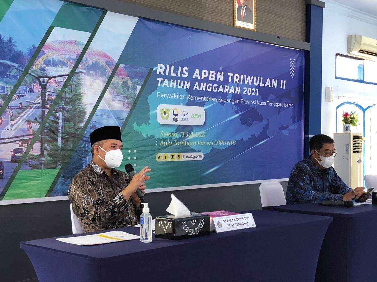 Kantor Wilayah Direktorat Jenderal Pajak Nusa Tenggara (Kanwil DJP Nusra) bersama Perwakilan Kementerian Keuangan (Perwakem) Nusa Tenggara Barat (NTB) melaksanakan rilis Anggaran Pendapatan dan Belanja Negara (APBN) sampai dengan Triwulan II Tahun 2021 (Selasa, 13/7).