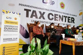 Kantor Wilayah Direktorat Jenderal Pajak Sulawesi Utara, Tengah, Gorontalo dan Maluku Utara (Kanwil DJP Suluttenggomalut) bersama dengan Universitas Dumoga Kotamobagu melaksanakan penandatanganan kesepakatan bersama pembentukan Tax Center sekaligus peresmian Tax Center Universitas Dumoga Kotamobagu. Kegiatan dilaksanakan di Aula Kampus B Universitas Dumoga Kotamobagu (Kamis, 23/9).