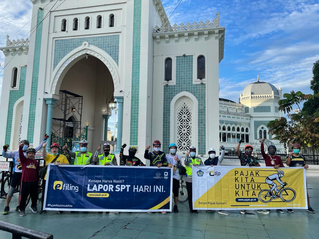 Kepala Kantor Wilayah Direktorat Jenderal Pajak (DJP) Sumatera Utara I Eddi Wahyudi melakukan kampaye Lapor SPT Tahunan di sekitar landmark Kota Medan (Jumat, 26/3). Kegiatan yang bertujuan untuk mensosialisasikan dan mengajak masyarakat agar segera melaporkan SPT Tahunan ini dilakukan dengan bersepeda bersama dengan pegawai di lingkungan Kanwil DJP Sumtera Utara I.