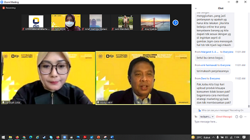 Abdul Djabir dan Ira Dyah Loka yang merupakan enterpreuner dan trainer menyampaikan strategi dan tips marketing online. KPP Pratama Tebet berharap melalui kegiatan ini, UMKM dapat tambahan ilmu dan ketrampilan marketing digital di masa pandemi.