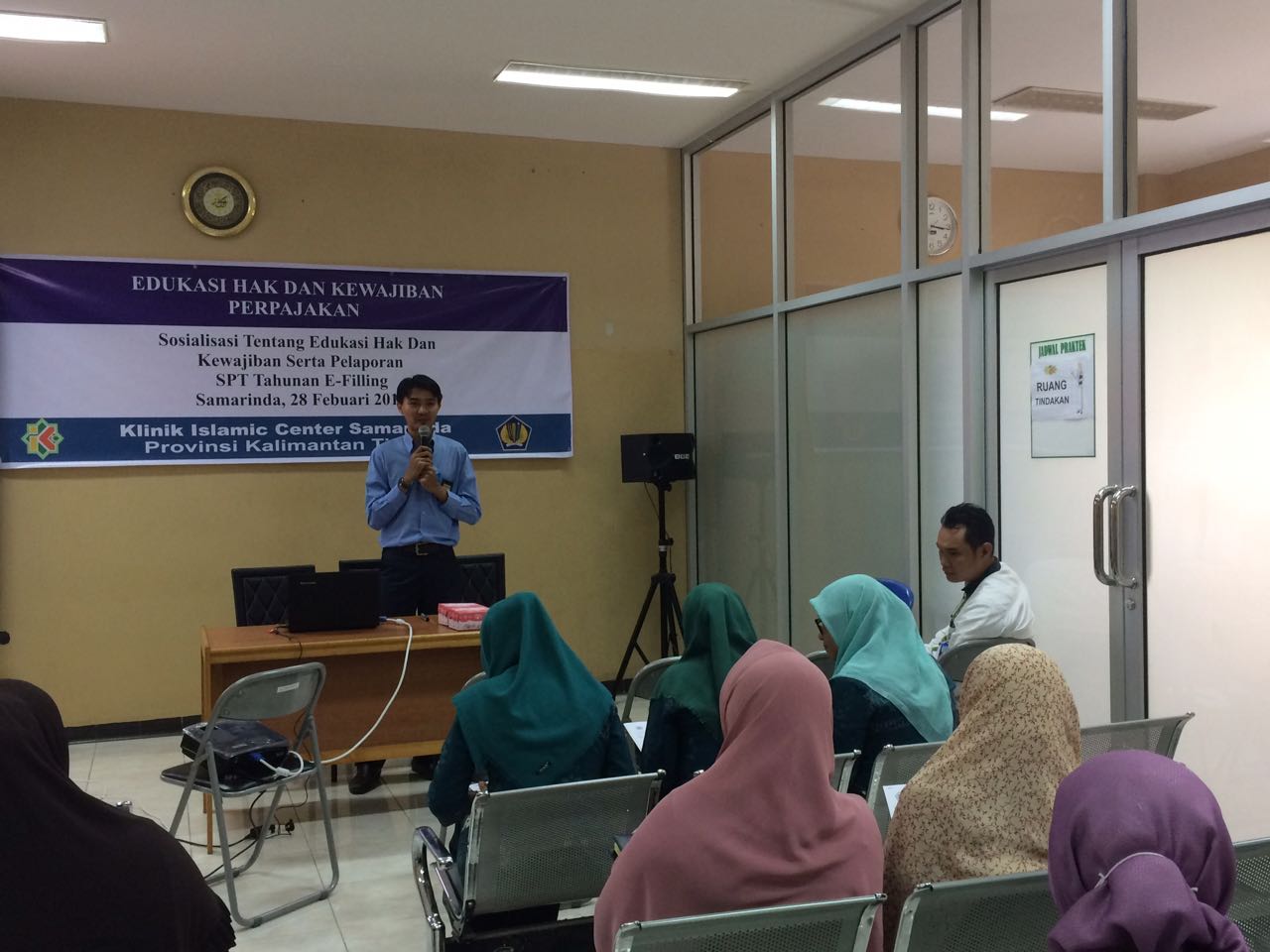 KPP Pratama Samarinda mendapatkan undangan dari Klinik Islamic Center Samarinda untuk memberikan Sosialisasi tentang Edukasi Hak dan Kewajiban Serta Pelaporan SPT Tahunan e-Filling kepada dokter dan karyawan Klinik Islamic Center di Ruang Medical Check Up Klinik Islamic Center Samarinda Jl. Slamet Riyadi No. 1 Komplek Masjid Islamic Center, Kota Samarinda (Rabu, 28/2).