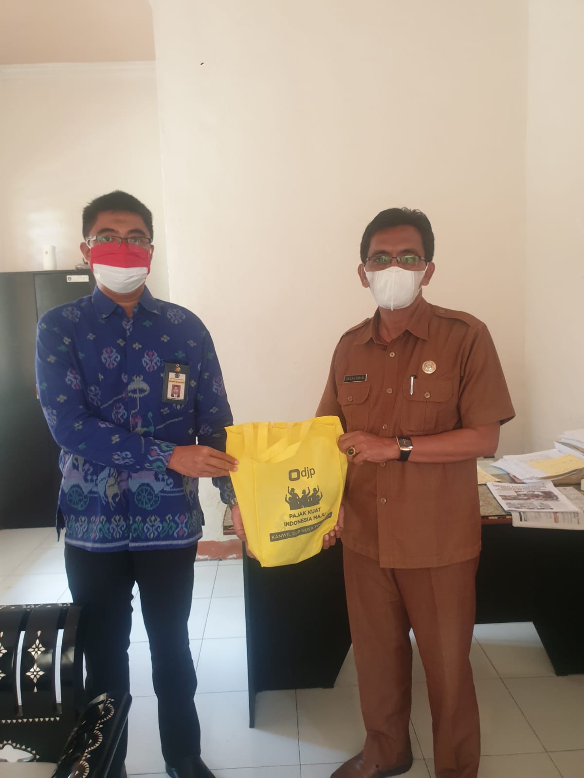 Kegiatan ini dilaksanakan dengan mengikuti prosedur protokol kesehatan pencegahan Covid-19, Kepala Seksi Kerja Sama dan Hubungan Masyarakat DJP Nusa Tenggara yang didampingi Fungsional Penyuluh Pajak Kodrat dan Ruswanto menggunakan batik lengan panjang dan memakai masker. Selain itu, sebelum melaksanakan tugas rombongan Kanwil DJP Nusa Tenggara telah melaksanakan tes usap antigen yang rutin dilaksanakan di Kanwil DJP Nusa Tenggara.