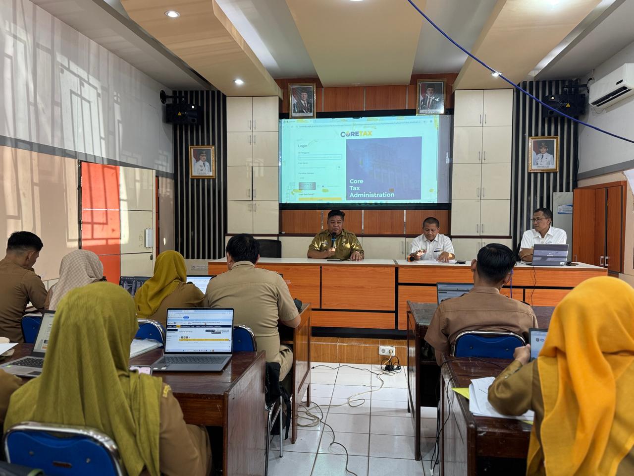 Kantor Pelayanan Pajak (KPP) Pratama Parepare menyelenggarakan bimbingan teknis (bimtek) penggunaan aplikasi Coretax Direktorat Jenderal Pajak (DJP) bagi perwakilan seluruh desa di Kabupaten Pinrang bertempat di Aula Dinas Pemberdayaan Masyarakat dan Desa Kabupaten Pinrang, Jalan Jenderal Gatot Subroto No 2, Kelurahan Macorawalie, Kecamatan Watang Sawitto, Kabupaten Pinrang (Senin, 28/7).