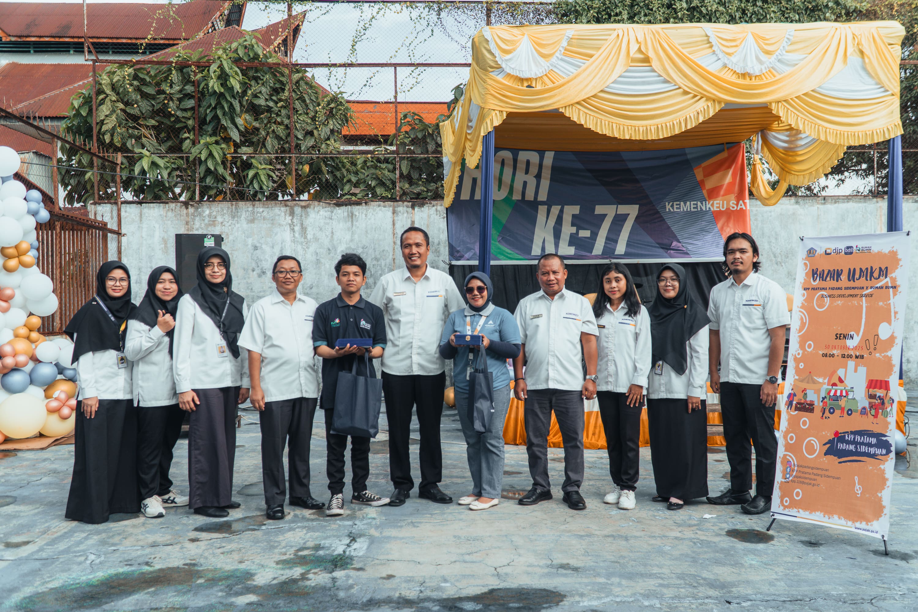 Kantor Pelayanan Pajak (KPP) Pratama Padang Sidempuan (Pajak Padang Sidempuan) melaksanakan kegiatan Business Development Service (BDS) dalam bentuk Bazar Usaha Mikro Kecil Menengah (UMKM) bertempat di KPP Pratama Padang Sidempuan (Senin, 30/10).