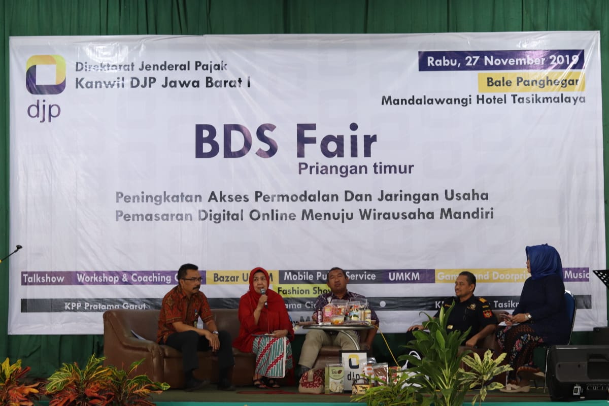 Kantor Wilayah DJP Jawa Barat I menyelenggarakan Business Development Services (BDS) 2019 se-Priangan Timur bekerja sama dengan KPP Pratama Tasikmalaya, KPP Pratama Ciamis, dan KPP Pratama Garut, Rabu (27/11) di Hotel Mandalawangi, Tasikmalaya. Kegiatan BDS tahun ini bertema “Peningkatan Akses Permodalan Dan Jaringan Usaha Pemasaran Digital Online Menuju Wirausaha”.