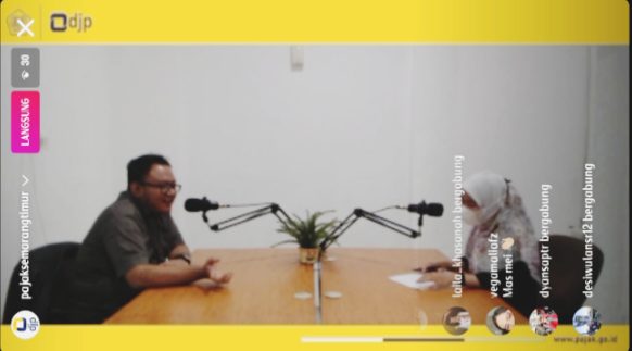 KPP Pratama Semarang Timur mengadakan kegiatan edukasi perpajakan terkait Surat Teguran melalui fitur live pada aplikasi Instagram di ruang rapat KPP Pratama Semarang Timur (Kamis, 14/10). Pemilihan media sosial Instagram sebagai media edukasi perpajakan dikarenakan instagram merupakan media sosial sejuta umat sehingga diharapkan dapat mempermudah penyampaian edukasi perpajakan kepada wajib pajak tanpa melalui tatap muka.