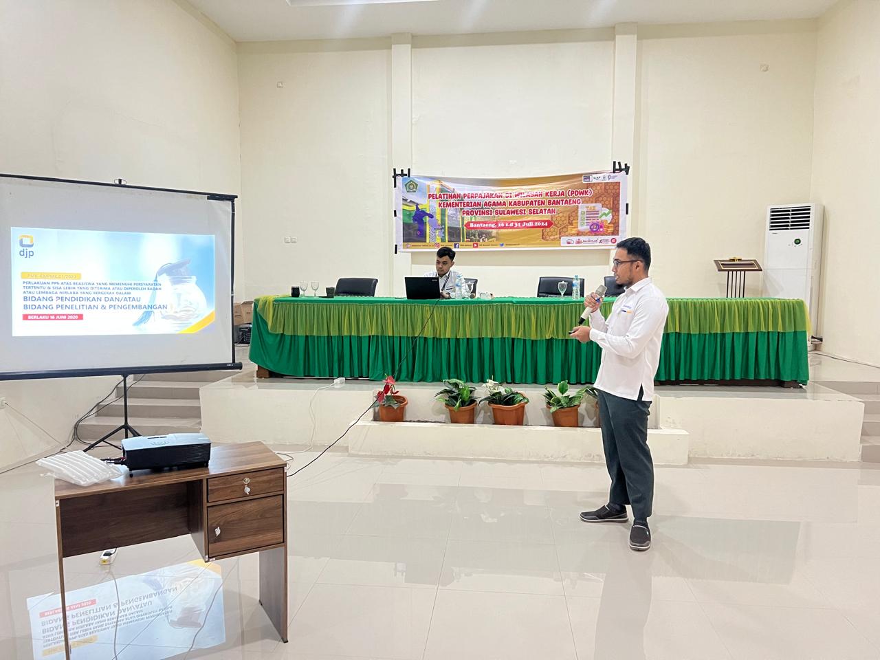 Materi yang disampaikan oleh Penyuluh Pajak Bantaeng untuk memberikan pengetahuan mendalam dan praktis agar peserta pelatihan dapat menerapkan pemahaman perpajakan dalam tugas sehari-hari mereka. Melalui pelatihan yang diadakan oleh Kementerian Agama berkolaborasi dengan KPP Pratama Bantaeng ini diharapkan peserta dapat memahami dan mengaplikasikan ketentuan perpajakan dengan lebih baik dan efisien.