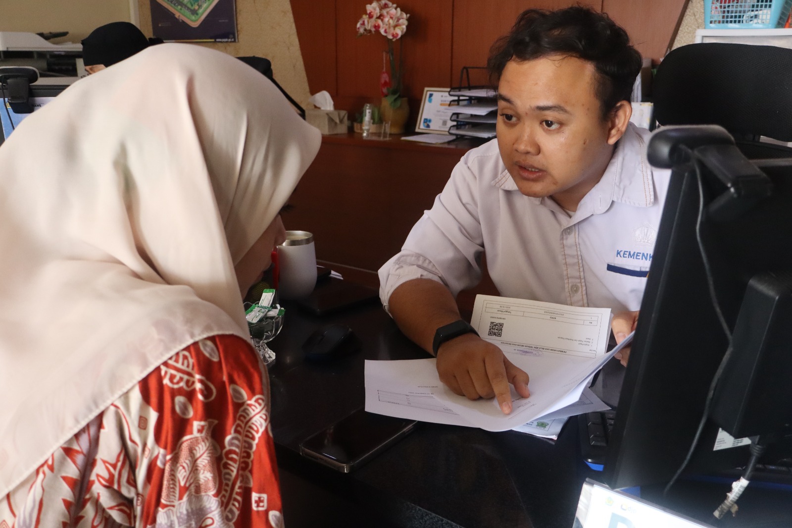 Wajib pajak pedagang sembako mendatangi Kantor Pelayanan, Penyuluhan, dan Konsultasi Perpajakan (KP2KP) Pinrang untuk berkonsultasi mengenai pengenaan Pajak Pertambahan Nilai (PPN) atas sembako di Helpdesk KP2KP Pinrang (Senin, 9/9).