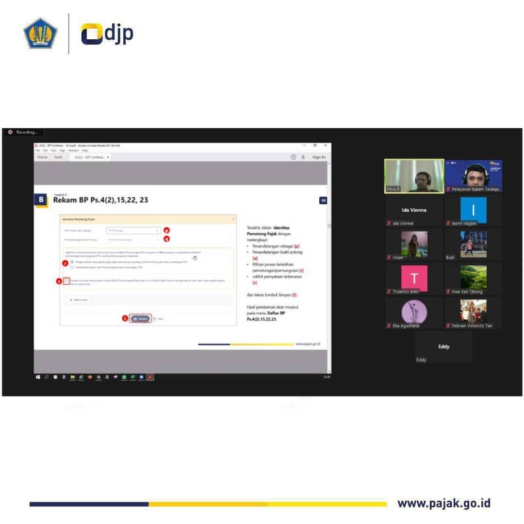 Kantor Pelayanan Pajak (KPP) Pratama Batam Selatan menyelenggarakan kelas pajak daring dengan materi elektronik Bukti Potong (e-Bupot) Unifikasi yang dihadiri oleh wajib pajak KPP Pratama Batam Selatan di Batam (Kamis, 2/6).