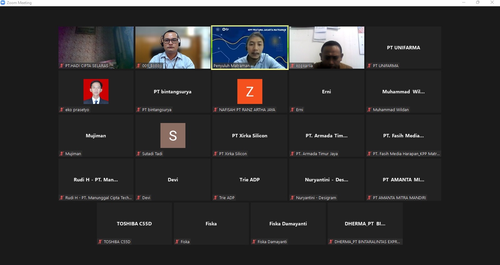 Dengan terbitnya Peraturan Direktur Jenderal Pajak Nomor PER-11/PJ/2022 tentang Perubahan Atas Peraturan Direktur Jenderal Pajak Nomor PER-03/PJ/2022 tentang Faktur Pajak pada 04 Agustus 2022 lalu, Kantor Pelayanan Pajak (KPP) Pratama Jakarta Matraman mengadakan kelas pajak secara daring bagi Wajib Pajak Pengusaha Kena Pajak (PKP) (Rabu, 14/09). Kelas pajak ini diikuti oleh PKP yang baru terdaftar maupun yang sudah lama terdaftar.