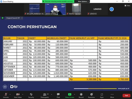 Kantor Pelayanan Pajak (KPP) Pratama Makassar Utara menyelenggarakan kegiatan kelas pajak SPT Tahunan untuk Orang Pribadi Usahawan secara luring melalui aplikasi zoom meeting (Kamis, 20/1). Tim penyuluh pajak KPP Pratama Makassar Utara memandu langsung jalannya kelas pajak dari ruang studio KPP Pratama Makassar Utara , Kota Makassar.