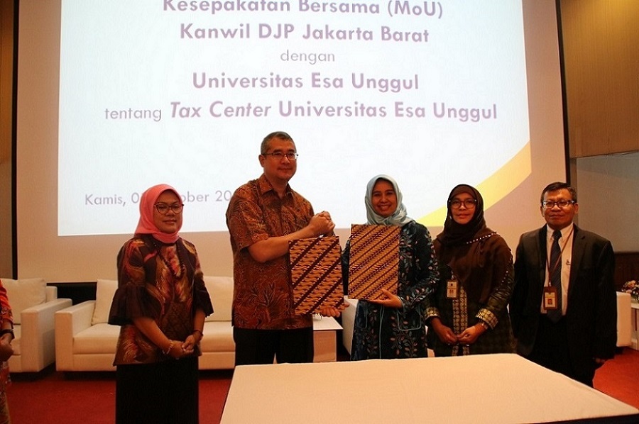 Pada sela-sela acara Business Development Services (BDS) KPP Pratama Jakarta Kebon Jeruk Dua dilaksanakan penandatanganan Kesepakatan Bersama (MoU) Kanwil DJP Jakarta Barat dengan Universitas Esa Unggul tentang Tax Center Universitas Esa Unggul. Acara yang diselenggarakan di Kemala Ballroom Universitas Esa Unggul tersebut dihadiri 400 penggiat UMKM yang berada pada wilayah KPP Kebon Jeruk Dua (Kamis, 3/10)