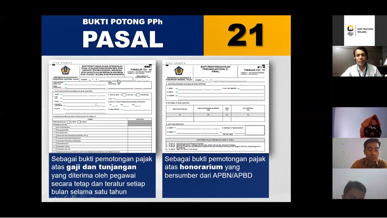 Setelah pemaparan materi, dilanjutkan dengan sesi tanya jawab dan diskusi. Terdapat pertanyaan yang disampaikan peserta yaitu mengenai media baru cara pelaporan PPh Pasal 23 melalui e-Bupot dari djponline bagi bendahara.