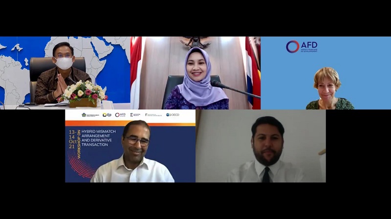 Direktorat Jenderal Pajak (DJP) melaksanakan kerja sama teknis dengan French Development Agency (AFD) menyelenggarakan lokakarya yang bertajuk “Joint DGT–AFD Workshop on Hybrid Mismatch Arrangement And Derivative Transaction” (Rabu, 13/10). Kegiatan yang berlangsung secara daring dan dipandu dari Ruang Internasional Direktorat Perpajakan Internasional, Kantor Pusat DJP di Jakarta ini dilaksanakan selama dua hari pada tanggal 13 dan 14 Oktober 2021.