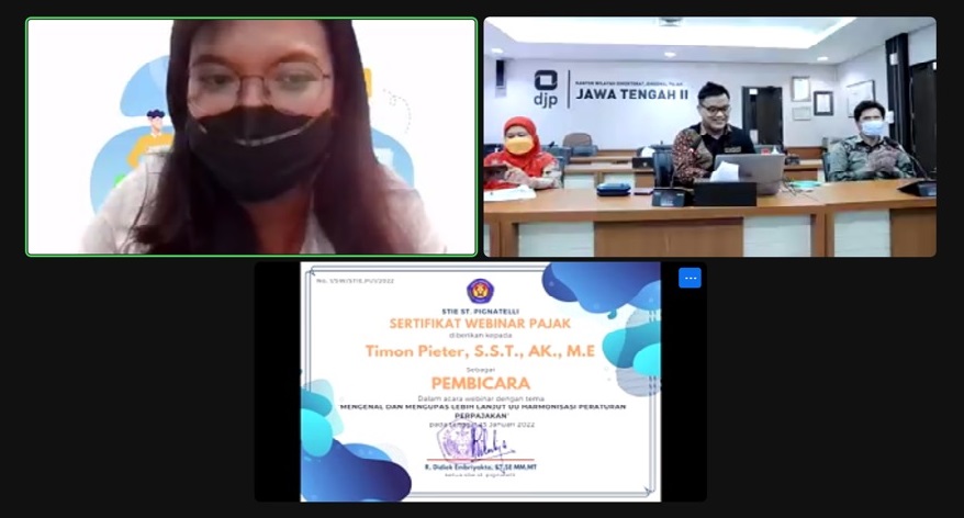 STIE Pignatelli Surakarta bersama Kantor Wilayah (Kanwil) DJP Jawa Tengah II menggelar webinar "Harmonisasi Peraturan Perpajakan" di Surakarta (Selasa, 30/11). Webinar kali ini diikuti sekitar 245 civitas akademika STIE Pignatelli.