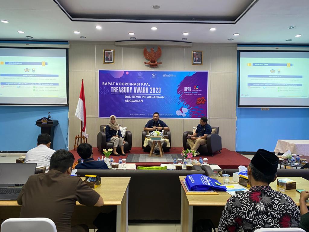Kegiatan dibuka dengan sambutan oleh Kepala KPPN Mukomuko Wahyu Budiarso yang menjelaskan mengenai kinerja dan penyerapan anggaran dari setiap Satuan Kerja (Satker) vertikal di Kabupaten Mukomuko. Pada pemaparannya, Wahyu juga menekankan agar setiap satker mengutamakan cashless society dalam rangka peningkatan penggunaan Cash Management System (CMS), Kartu Kredit Pemerintah (KKP) dan aplikasi DigiPaySatu dalam setiap transaksi yang dilaksanakan.
