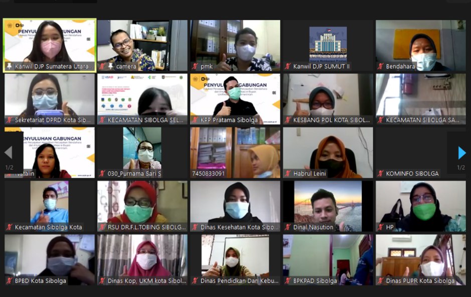 Kantor Wilayah Direktorat Jenderal Pajak (Kanwil DJP) Sumatera Utara II mengadakan kegiatan penyuluhan gabungan secara daring bersama para Bendahara Instansi Pemerintah Organisasi Perangkat Daerah (OPD) Kota Sibolga di masing masing tempat di Kota Sibolga, Sumatera Utara (Kamis, 9/9).