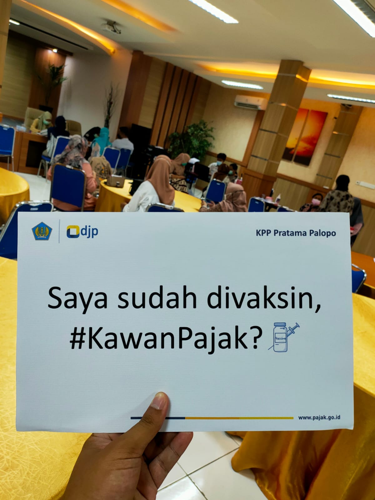 Kantor Pelayanan Pajak (KPP) Pratama Palopo bekerja sama dengan Puskesmas Kecamatan Wara dan Kepolisian Resor Palopo menyelenggarakan kegiatan vaksinasi massal bagi masyarakat (Kamis, 30/9). Kegiatan ini dilangsungkan dengan penerapan protokol kesehatan Covid-19 ketat di ruang aula KPP Pratama Palopo, Kota Palopo.
