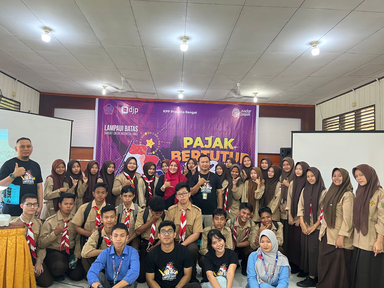Kantor Pelayanan Pajak (KPP) Pratama Rengat menyelenggarakan kegiatan Pajak Bertutur Tahun 2024 yang berlokasi di Aula Sekolah Menengah Kejuruan Negeri (SMKN) 1 Rengat (Rabu, 7/9). Kegiatan yang mengusung tema "Lampaui Batas, Bangkit untuk Indonesia Emas" ini berlangsung selama dua jam, dimulai dari pukul 09.00 WIB sampai dengan 11.00 dan diikuti oleh 30 peserta siswa dan siswi SMKN 1 Rengat.