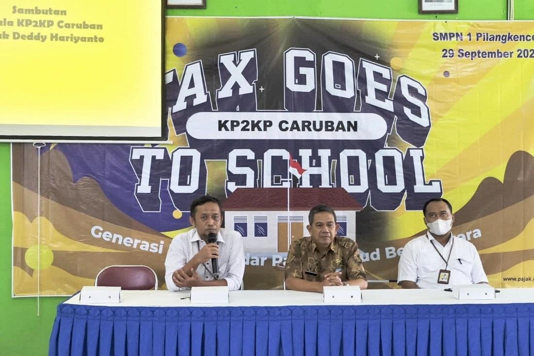 Kantor Pelayanan, Penyuluhan, dan Konsultasi Perpajakan (KP2KP) Caruban menggelar acara edukasi perpajakan Tax Goes To School (TGTS) 2022 bersama SMP Negeri 1 Pilangkenceng di Madiun (Kamis, 29/9). Kegiatan diikuti oleh 49 siswa-siswi SMP Negeri 1 Pilangkenceng bersama empat orang guru pendamping.