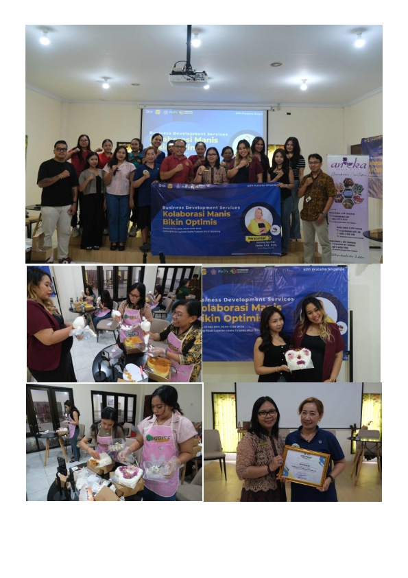 Para peserta yang berasal dari perwakilan UMKM di wilayah Buleleng diberikan pelatihan singkat menghias kue. Selain pemberian tips dan trik dalam bisnis cake and bakery, kegiatan ini juga dibarengi dengan praktik langsung.