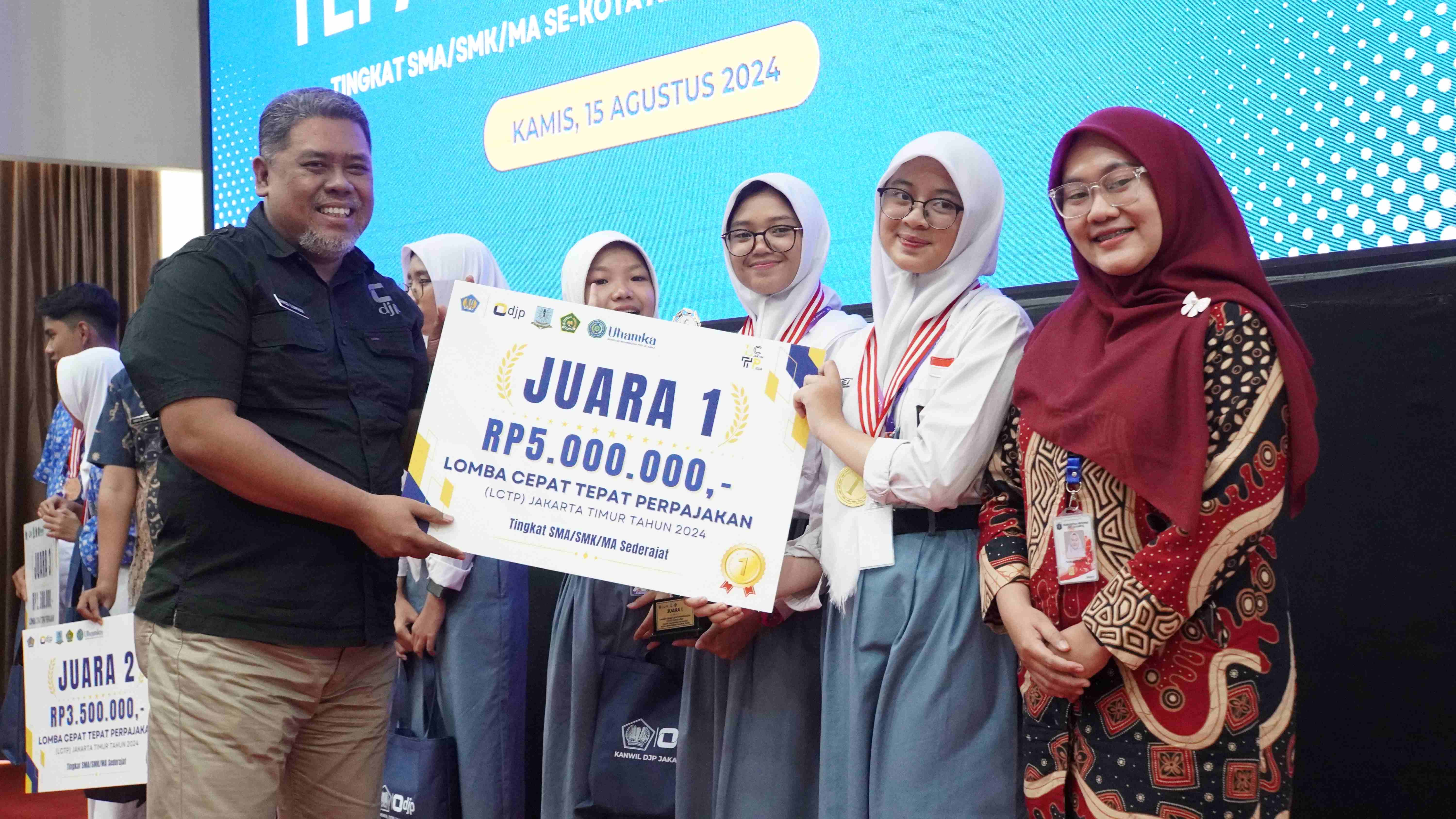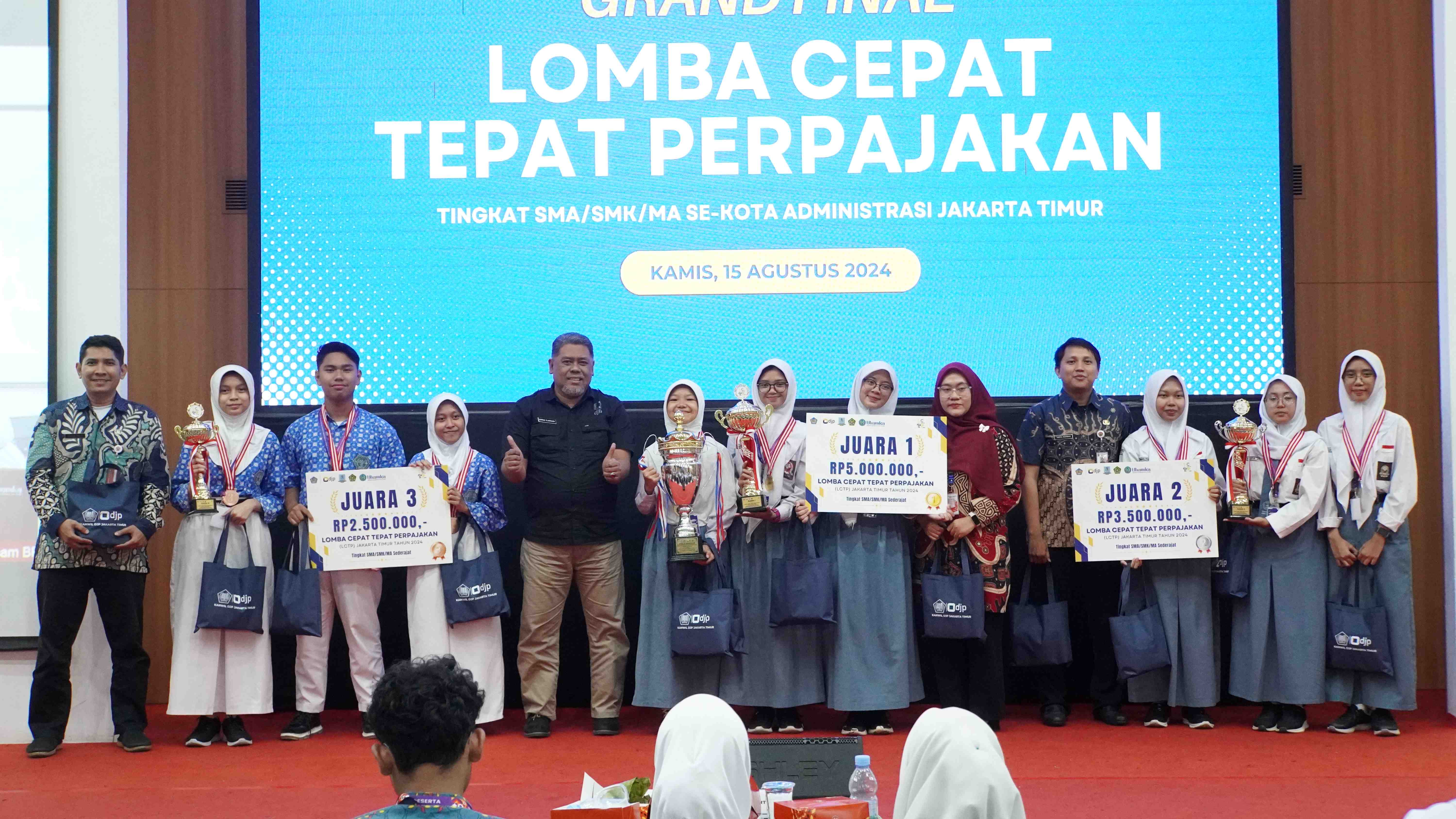 Kantor Wilayah (Kanwil) Direktorat Jenderal Pajak (DJP) Jakarta Timur bekerja sama dengan Pemerintah Kota Administrasi Jakarta Timur, Kantor Wilayah Kementerian Agama Provinsi DKI Jakarta, dan Tax Center Universitas Muhammadiyah Prof. Dr. Hamka (UHAMKA) menyelenggarakan Lomba Cepat Tepat Perpajakan (LCTP) Tahun 2024 di Aula A. R. Fachrudin Gedung Fakultas Ekonomi dan Bisnis UHAMKA yang beralamat di Jalan Limau II, Kramat Pela, Kebayoran Baru, Jakarta Selatan (Kamis, 15/8).